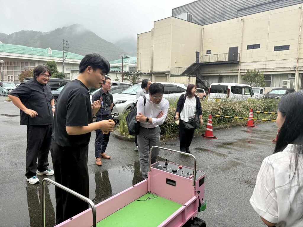 市内のピーマン農家や梨農家で実演を行い、そのスムーズな追従性能と安全性に参加者からは「まるで生き物のよう」「使う人のことをよく考えた設計」と高い評価を得ました。この実証実験への参加がきっかけで、大手鉄道会社からも導入検討の連絡があり、農業以外の分野への展開も視野に入っています。