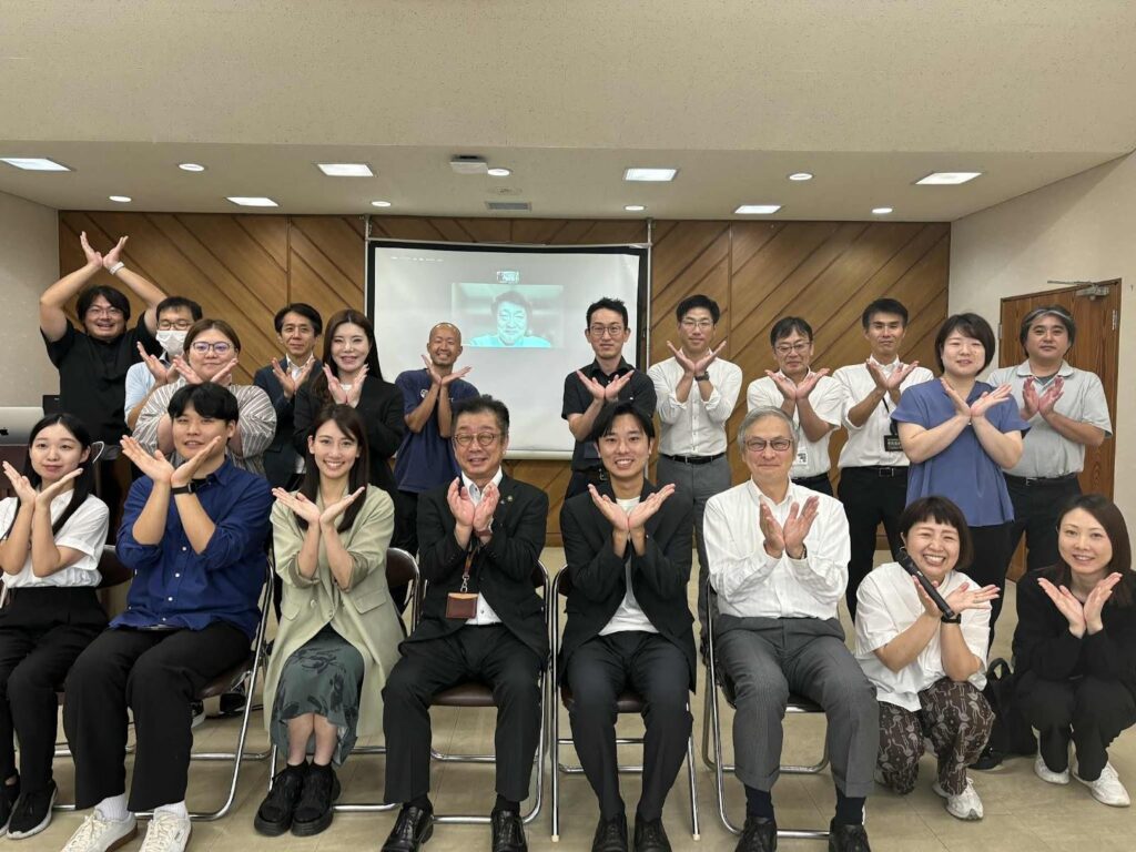 全てのプレゼン終了後、登壇者、主催者、参加者で集合写真を撮影。その場で決まった養父市を象徴する「Yポーズ」で、笑顔あふれる一枚となりました。